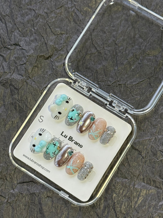 Blue Fish | cat eyes nails |short press on nails | handmade nails