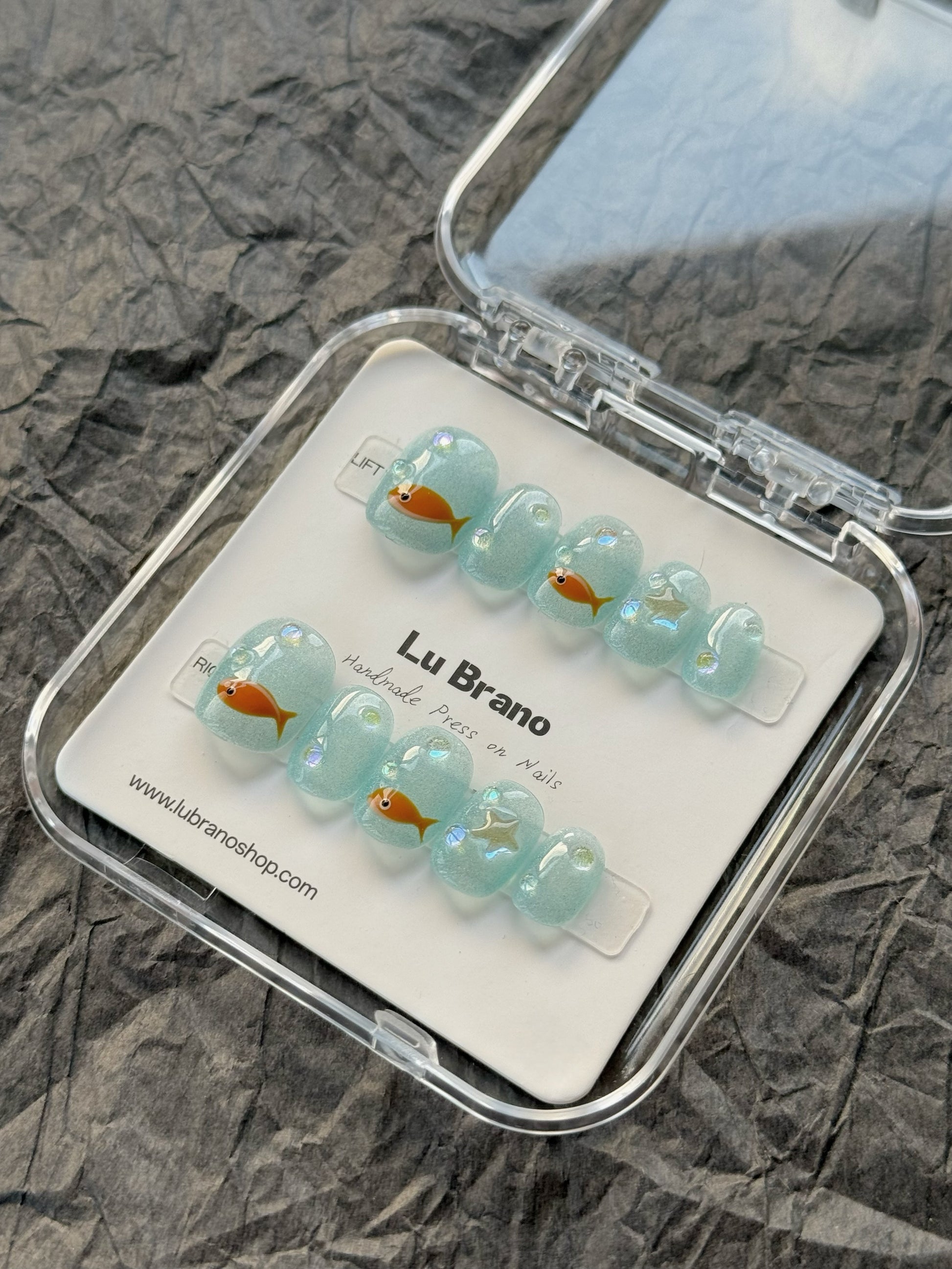 Blue Fish | cat eyes nails |short press on nails | handmade nails